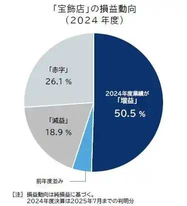 2025年1-7月に発生した宝飾店の倒産は5件で、前年同期の11件を大きく下回った。このペースが続けば、通年では過去20年間で最少となる見込み。国内外の富裕層向けの販売が好調なほか、中古ジュエリーの需要増、貴金属価格の上昇が経営を支え、2024年度の増益企業は50.5%と過去20年間で最大となった。市場価格の高騰による購買意欲の低下が懸念されるなか、多様な販売チャネルを通じた新たな顧客層の開拓が注目される。 |