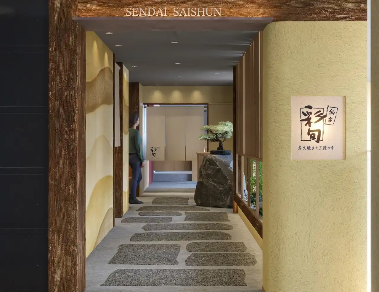 2008年2月、アパホテル〈仙台駅五橋〉と同時にオープン以来17年間、「和食・割烹 彩旬」として営業を行ってきたが、今般のフルリニューアルを機に、宮城県をはじめとする東北の食にこだわり、店舗中央に配した焼き台カウンターで地物の炭火焼きやご当地料理などを常時10種類以上の東北地酒とともに愉しめる店舗へと生まれ変わる。 |