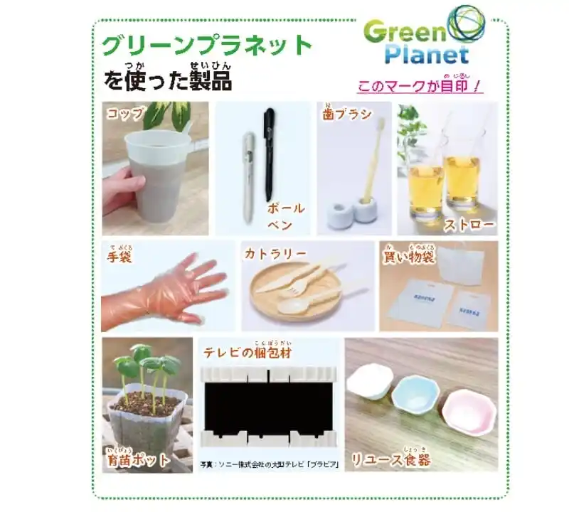ストロー、レジ袋、カトラリー、食品容器包装材などの幅広い用途へ利用されており、二酸化炭素の排出量削減や地球環境保全に貢献します。 |