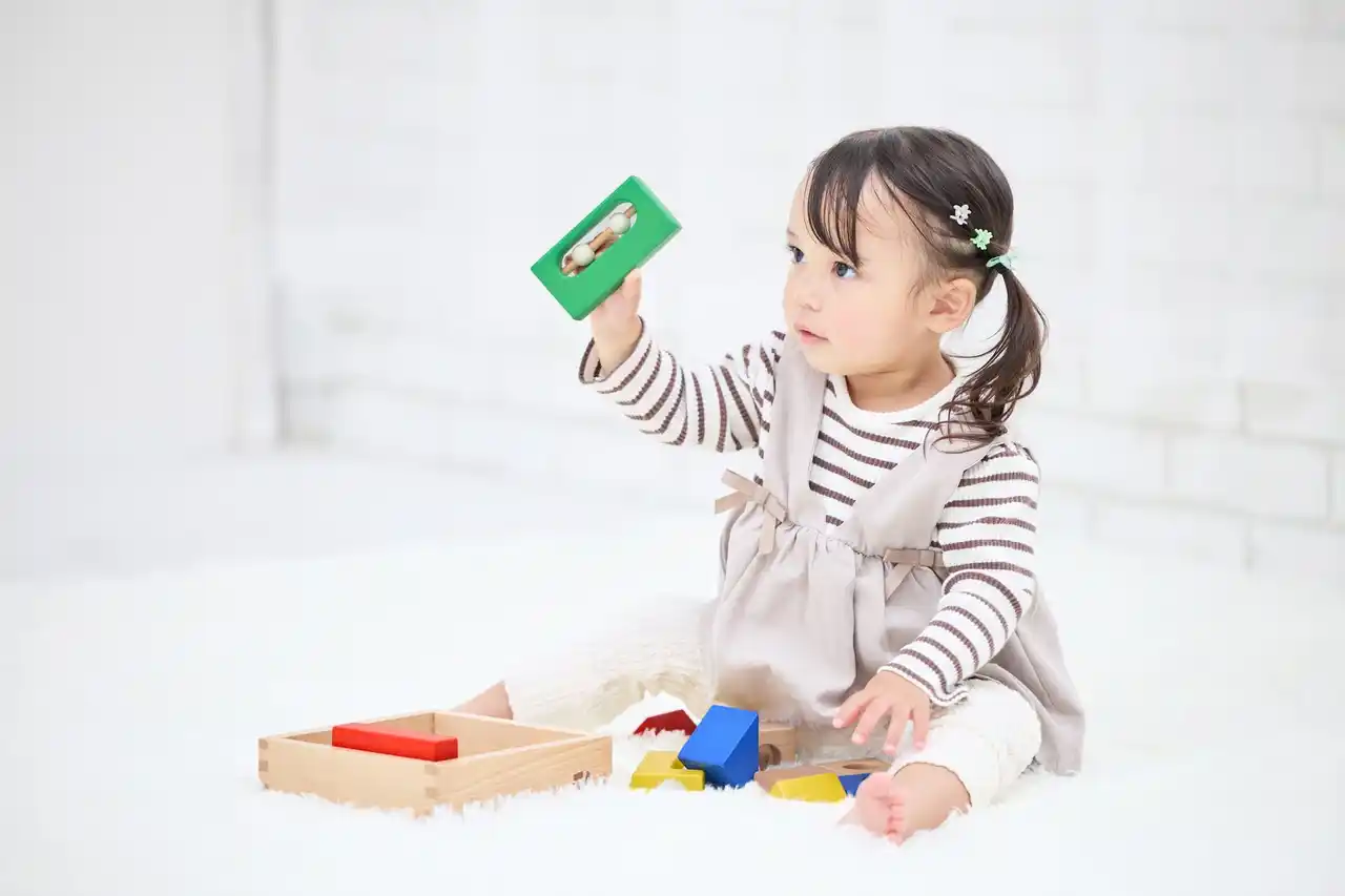振る・積む・並べるあそびを通して多彩な音と色を楽しむことができます。 |