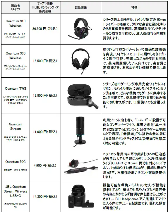 ※すべての製品情報は公式サイト(https://jp.jbl.com/quantum-series.html)よりご覧ください。 |