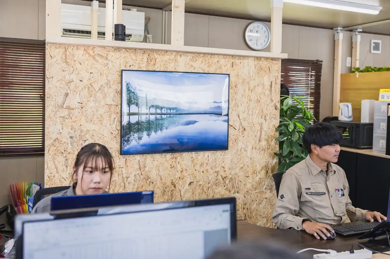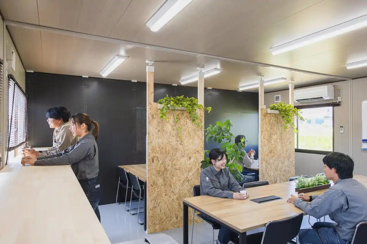 さらに本現場事務所を通じて、人手不足が深刻化する中小建設業の「3K(きつい・汚い・危険)」という旧来的なイメージの改善を図るとともに、働き手にとって「魅力的で、働きたくなる建設業界」の実現を目指すことも、当社の目的の一つです。今後は、この取り組みを中小建設業におけるイメージ改善の象徴的な活動と位置づけ、継続的な社内展開と対外的な情報発信を強化してまいります。 |