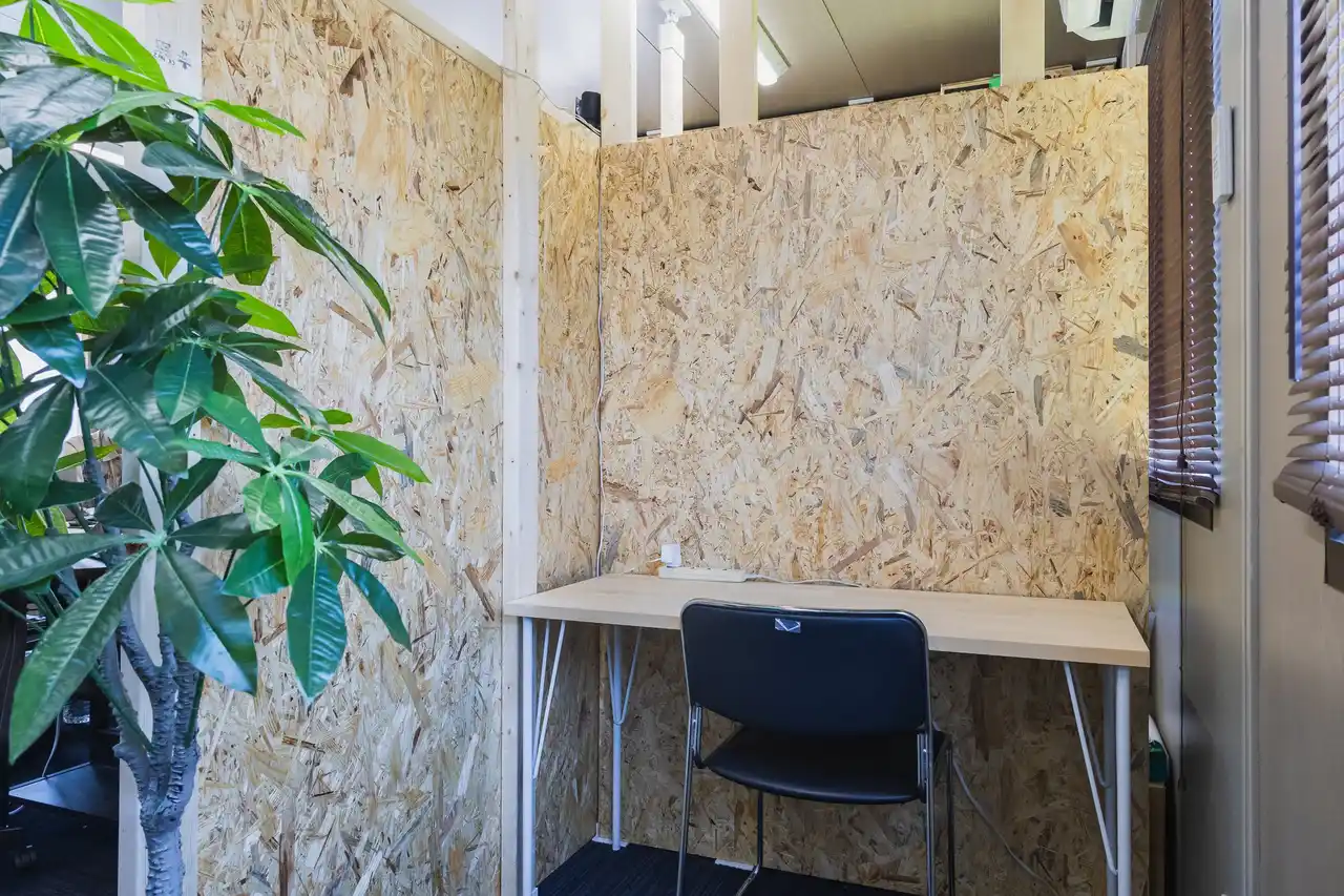 周囲を気にせず集中ができる個別ブースは正確さが求められる施工管理業務にも適した空間となっています。また、プライバシー性の高い環境により、オンライン会議も快適に利用できます。 |
