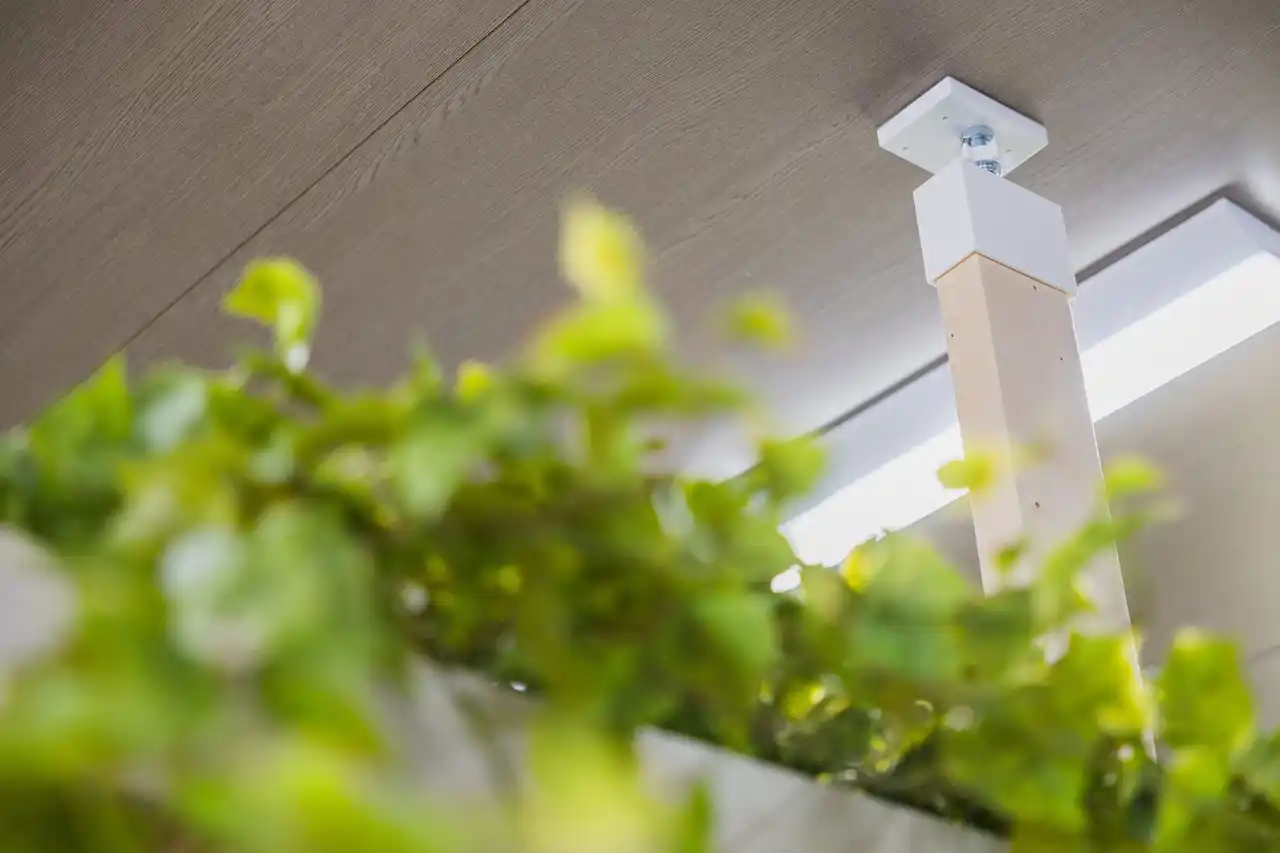 また、現場事務所はレンタルでの利用が多く、壁に穴をあけたり傷をつけたりする施工が難しいことが多いとされています。そこで、木材に取り付けて、床と天井に突っ張るだけで簡単に支柱を立てられる同社の人気商品「LABRICO(ラブリコ)」を活用することで、スペースの有効活用はもちろん、使い勝手や彩りや心地よさあるウェルネス空間を実現することができました。 |