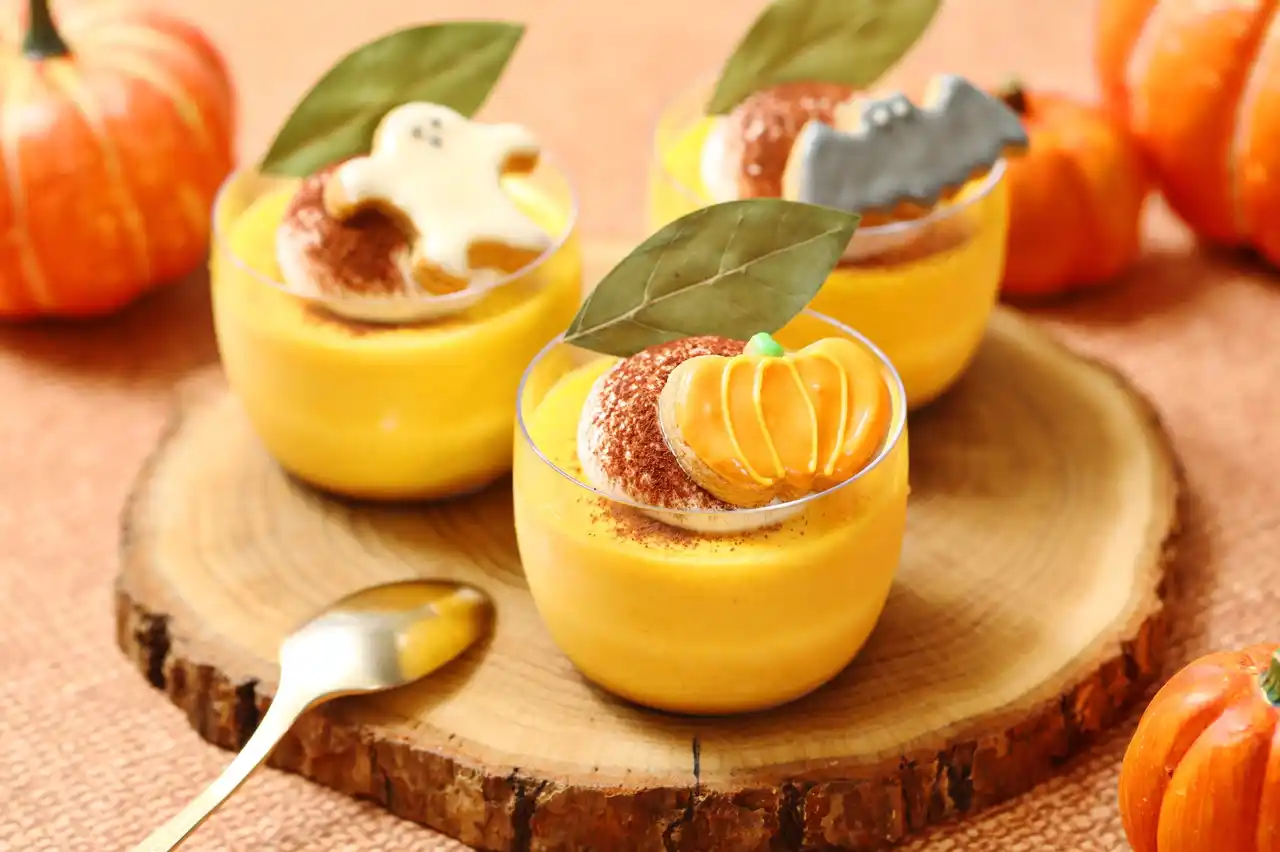 さらに、ハロウィンシーズンには、累計販売数4万個※1を超える人気スイーツ『シャンティちゃん』が魔女の帽子姿でおめかしして登場。北海道産のかぼちゃペーストを使用した『かぼちゃのプリン』には、おばけやコウモリのアイシングクッキーを飾り付け、見た目も味わいも楽しめるハロウィンスイーツに仕上げました。 |