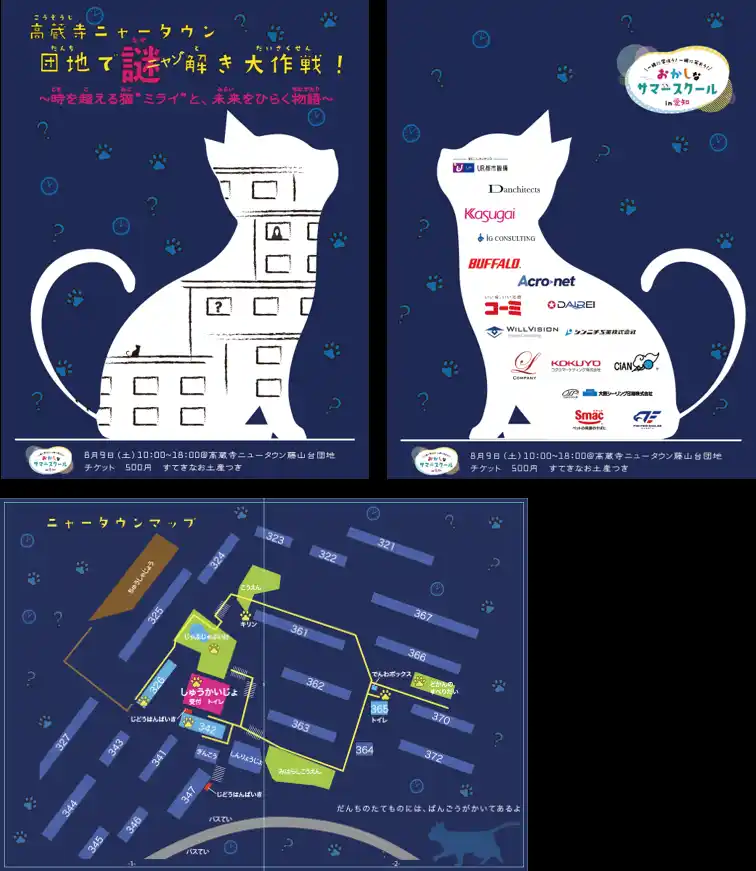 株式会社バッファロー(本社:東京都千代田区、代表取締役 社長執行役員CEO:牧 寛之)は、2025年8月9日(土)に開催されるおかしなサマースクール2025「高蔵寺ニャータウン 団地でニャゾ解き大作戦!~時を超える猫 “ ミライ “ と、未来をひらく物語」に主催企業の1社として参加します。 春日井市の高蔵寺ニュータウンは日本三大ニュータウンの1つ。今から50年以上前、緑多き丘陵地帯にゼロから設計・整備された住宅エリアには、現在も4万人以上が暮らしています。そんな高蔵寺在住者はもちろん、そうでない人も参加できるのが当イベント。昭和、平成、令和という時代の変遷を感じながら、高蔵寺ニュータウンの歴史や未来をひも解く街歩き型の謎解きイベントです。 |