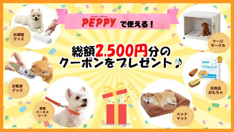 ペット用品サイト「PEPPY(ペピィ)」2,500円分クーポン(https://www.peppynet.com/) |