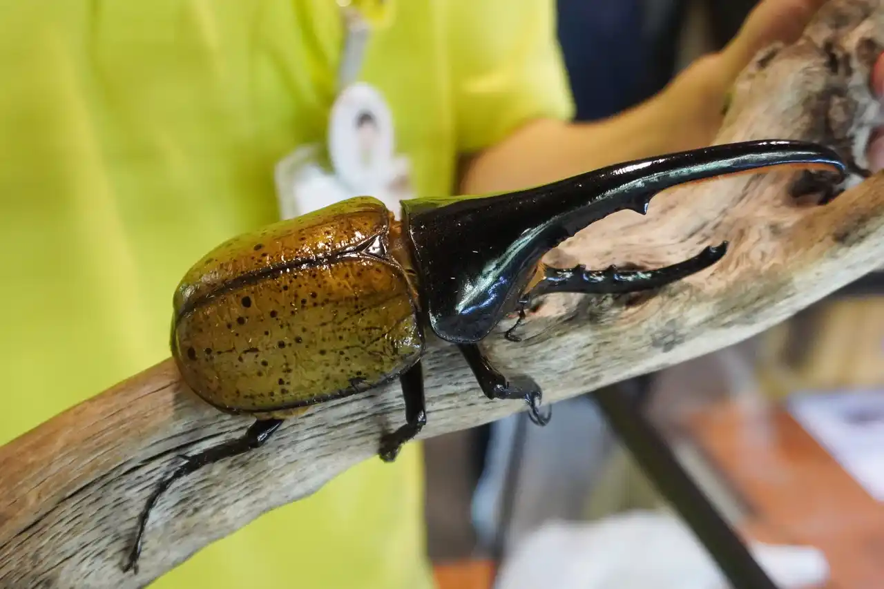 子どもたちに大人気のヘラクレスオオカブトと一緒に写真が撮れます。 |