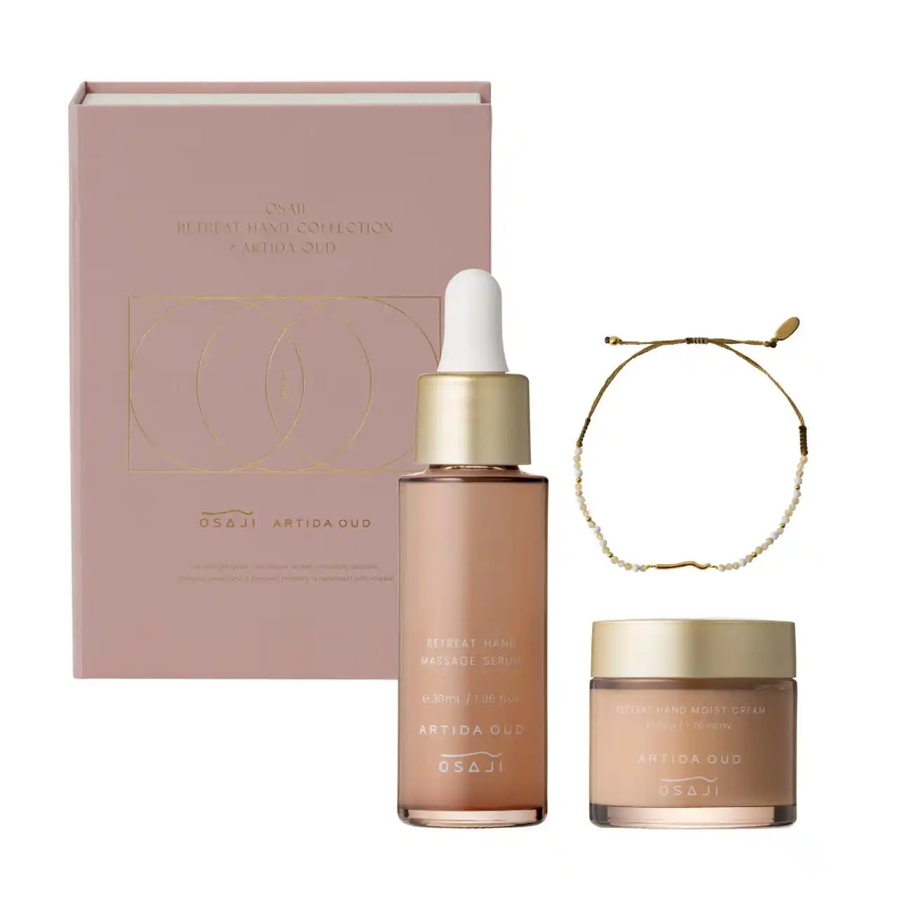 OSAJIで絶大な人気を誇る、リトリートハンドセラムとクリーム、そしてARTIDA OUDの天然石ブレスレットの限定セット。 |