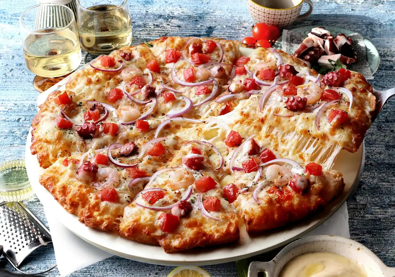 海老と真ダコの2種類のシーフードの旨みに、瀬戸内レモン果汁を使用した爽やかな香りが楽しめる特製ソースを合わせたシーフードピザです。 |
