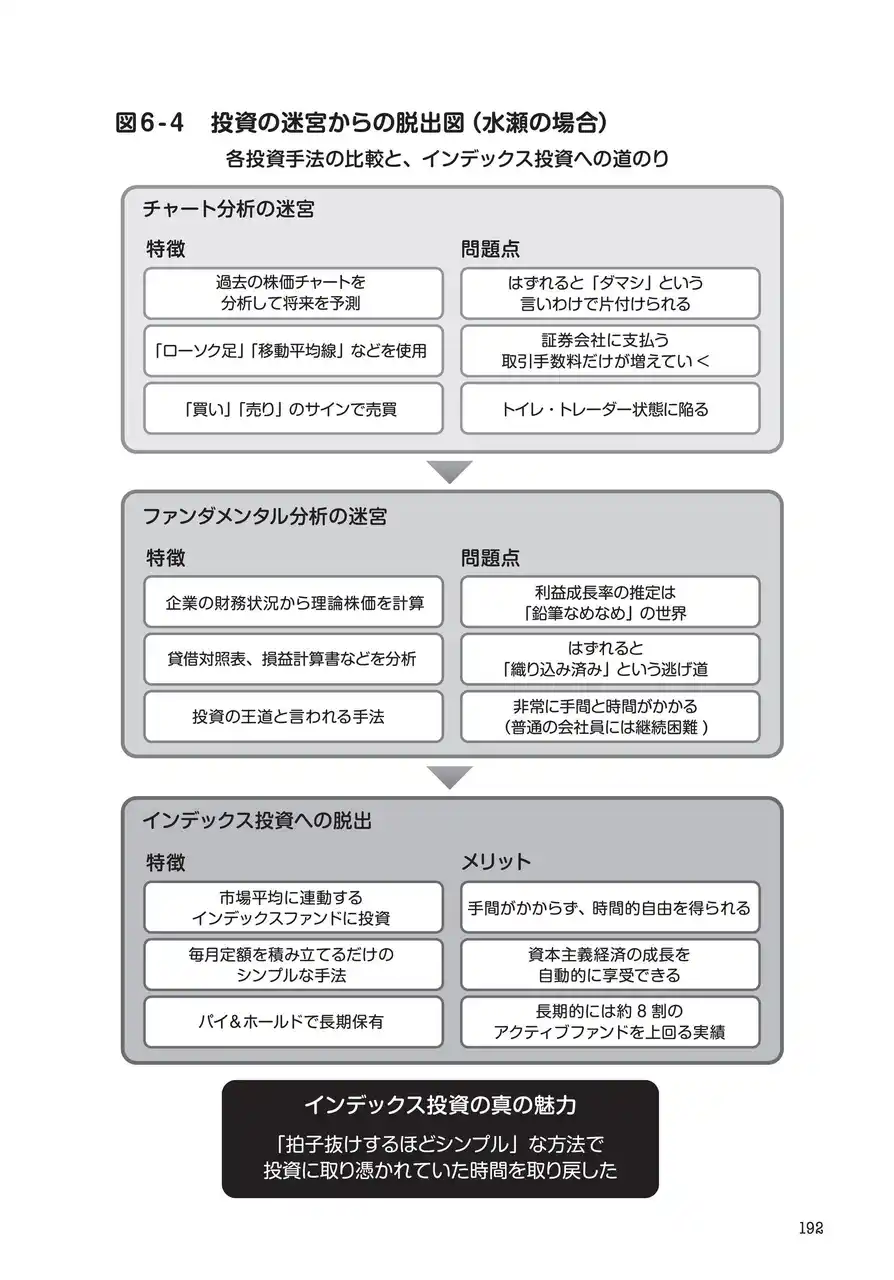 ■プロローグ「ダメ男の烙印」 26歳、貯金ゼロ、車2台分のローン持ち。「このままじゃマズい」――すべては居酒屋での友人との会話から始まった。 【第I部】実践編 ■インデックス投資前夜の大迷走時代(2000年・27歳~2002年・29歳) チャート分析に没頭し、ファンダメンタル分析に時間を費やす日々。しかし、待っていたのは「ダマシ」や「織り込み済み」といった便利な言いわけと、増え続ける手数料だけだった。 |