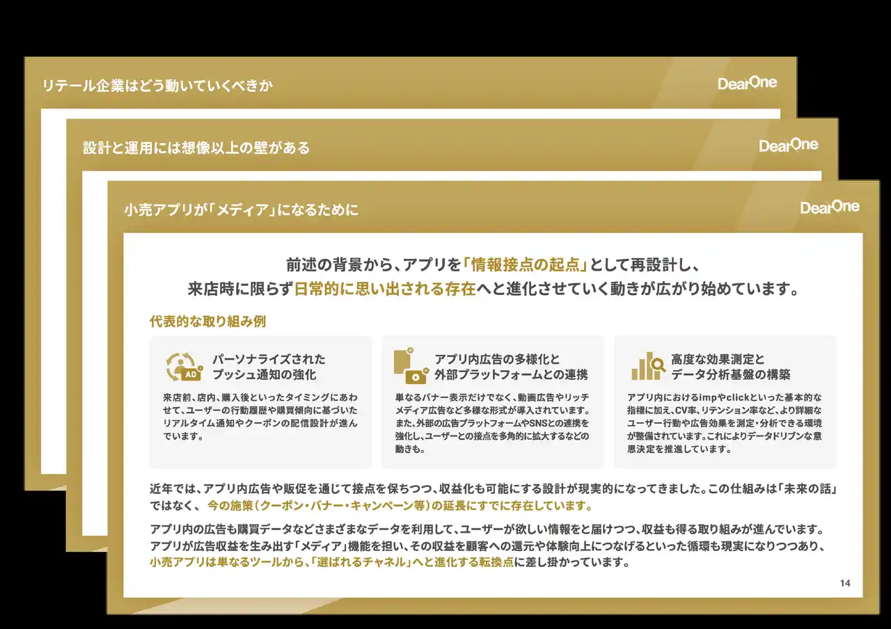 事業者が直面する課題: 小売アプリがメディア化を進める上で直面する「設計・運用の壁」にも言及し、事業者の一般的な課題点について取り上げます。 |