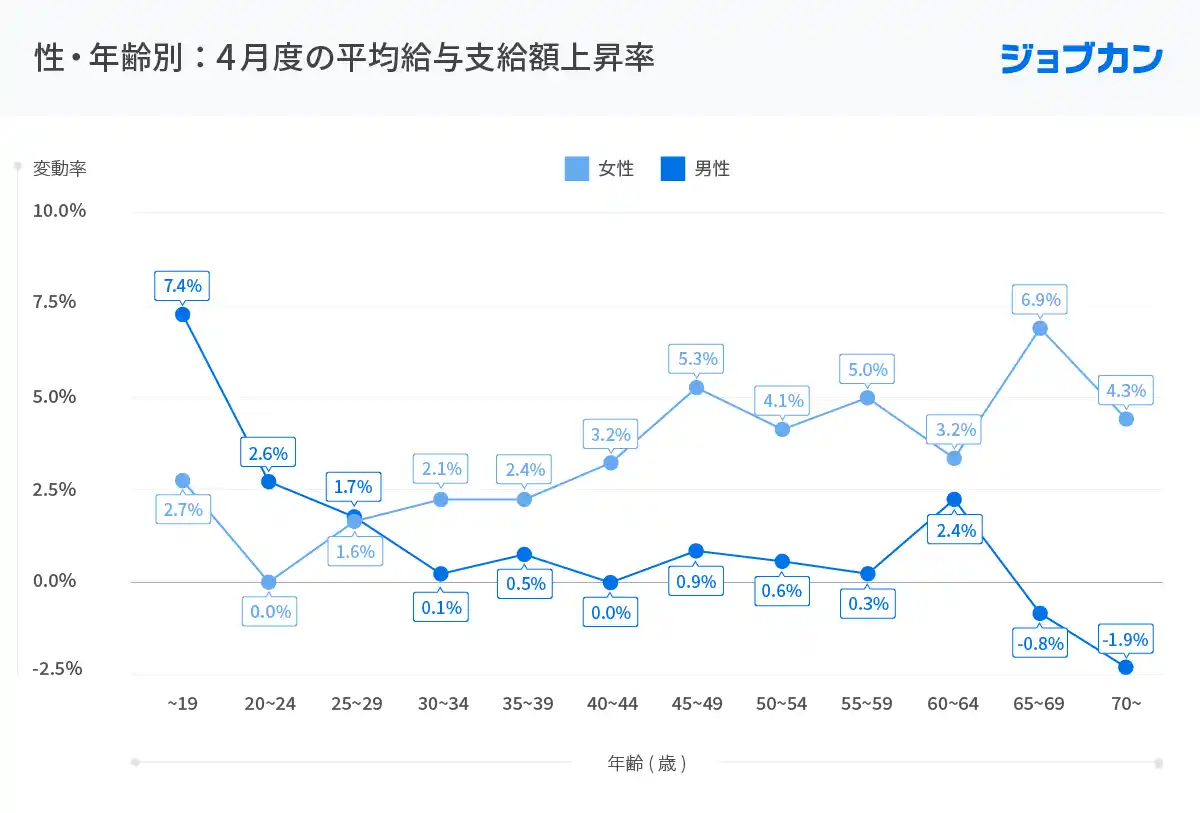 【変化の兆し】 40代以降の女性の給与が大幅増(45歳以上で前年比+5%超)、格差是正への動きか。 |