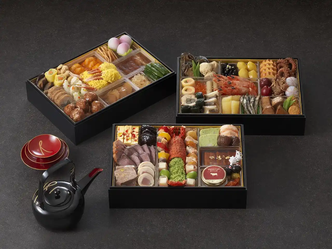 そのほか、「和洋中三段重」(4~6名様用、75,600円)や「和洋中三段重」(3~4名様用、49,680円)、「和洋二段重」(3~4名様用、38,340円)、「和洋中一段重」(2名様用、19,980円)など、ご家族が集まるお正月にぴったりの三段重から、少人数にもおすすめの一段重まで、シーンに応じてお選びいただける多彩な商品が揃います。また、全29 種の洋風料理を詰め合わせた「オードブル」(2~3名様用、18,900円)や柔らかなサーロインを使い旨味を引き出した「迎春 黒毛和牛ローストビーフ」(2名様用、19,440円)もご用意します。 |