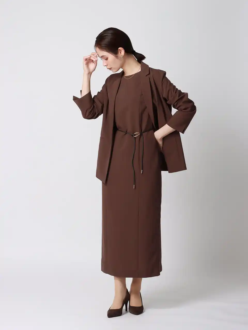 左:同素材のジャケット+ワンピース合わせできちんと感を演出。 |