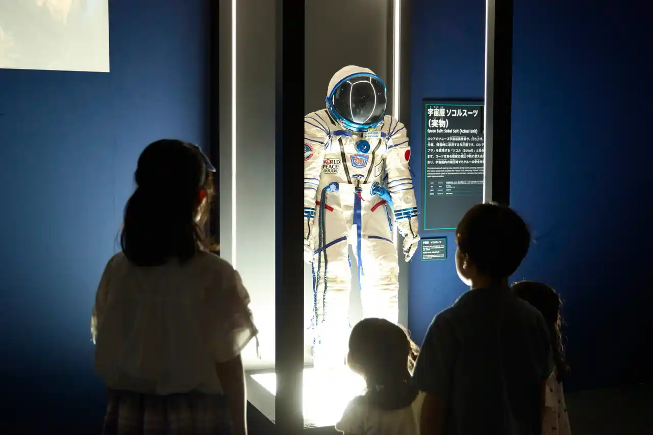 会場内には「ソユーズ宇宙船 帰還モジュール」(実機)が展示されています。こちらは2021年に日本の民間人で初めて国際宇宙ステーション滞在を果たした前澤友作さんが搭乗したものです。 |