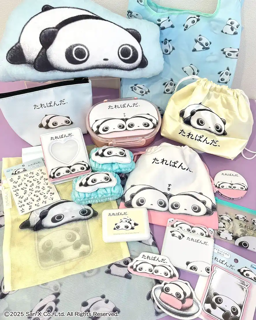 今回は、つぶらな瞳とたれたポーズが愛おしい「たれぱんだ」の魅力をそのまま詰め込んだ、全35アイテムを展開。今っぽいくすみパステルをベースに、日常にそっと寄り添うような癒し系デザインに仕上がっています。ファッションアイテムはもちろん、ランチグッズやホームグッズなど、実用性も意識したアイテムラインナップです。 |