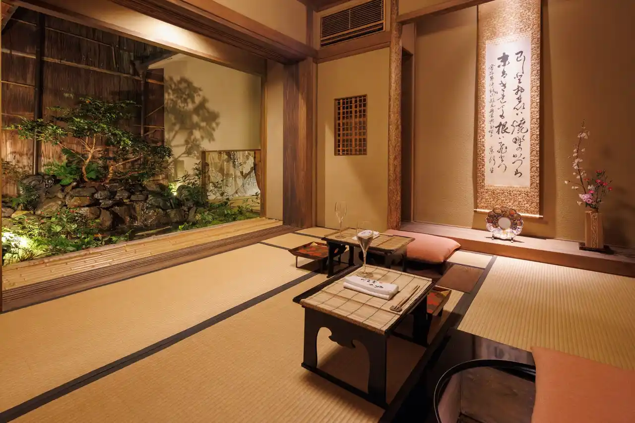 坪庭を眺めることができるお部屋人気のお部屋。お部屋のご指定も承っております(別途個室料有り) |