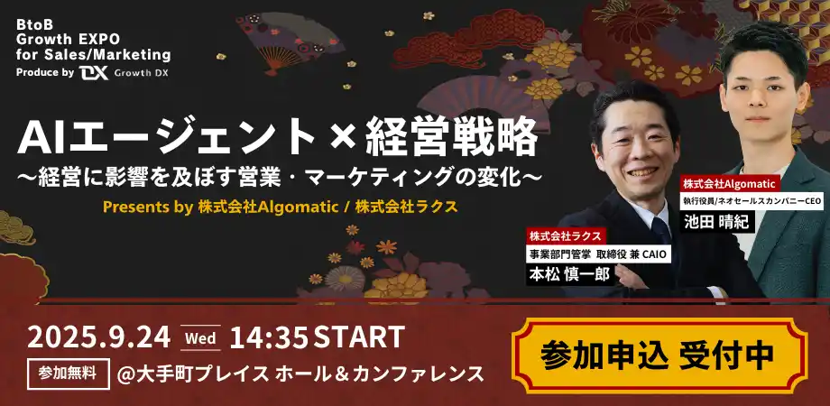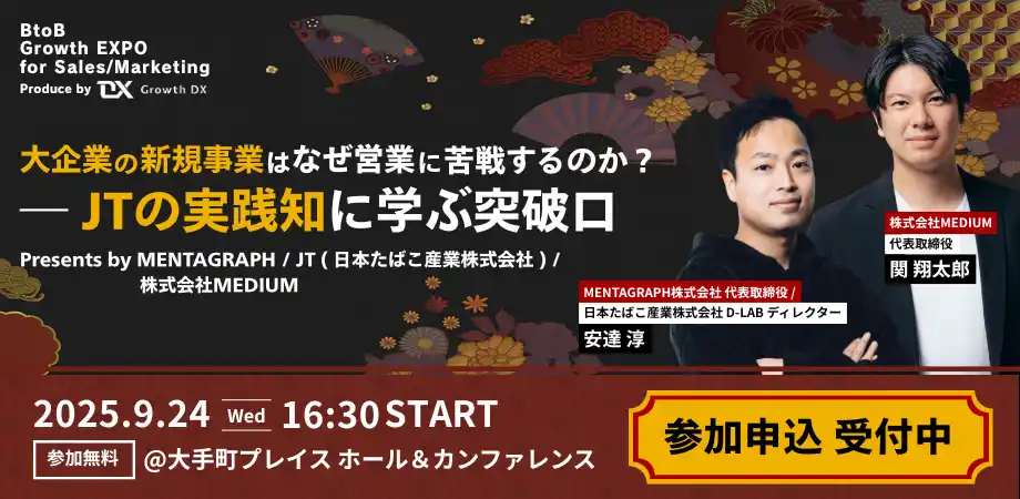 株式会社Growth DXは『BtoB Growth EXPO』(2025年9月24日(水)/大手町プレイス ホール&カンファレンス 2F)を開催いたします。
