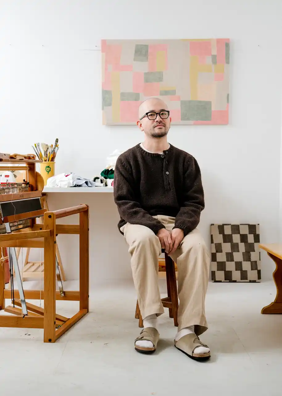 | Donchiは、同じかたちを型染めの技法でひとつずつ帆布に染めていくアーティストです。繊細な揺らぎを感じさせるそのフォルムは、どれも少しずつ表情が異なり、じっと見ているとかすかに揺れているようにも、人の姿のようにも見えてきます。 | ||||||||||||||||||||||