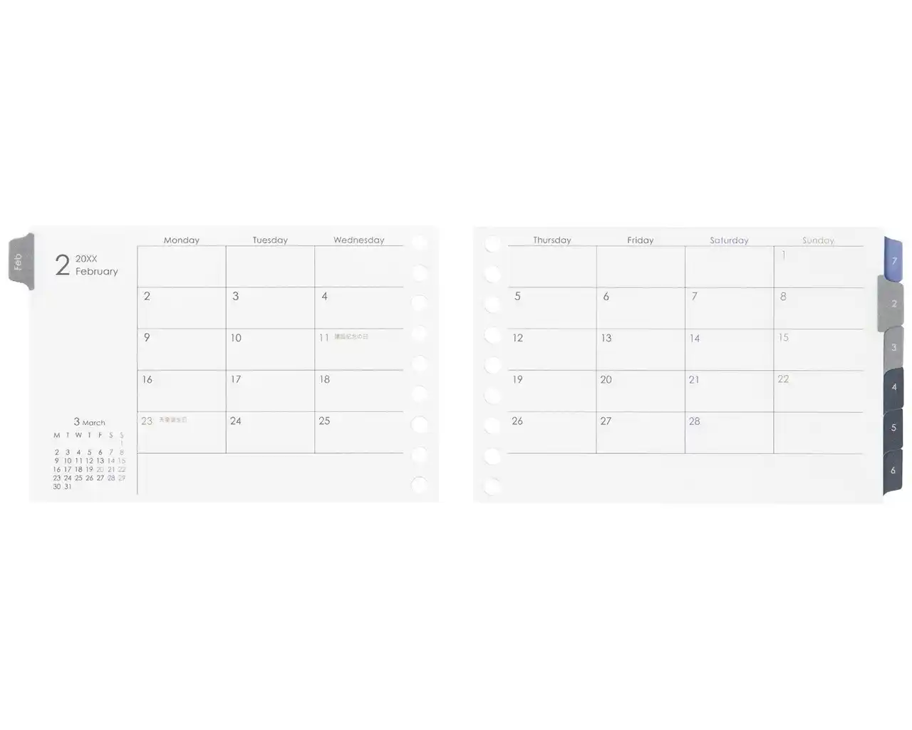 月間ダイアリータブあり、3mm方眼罫(メモ) |