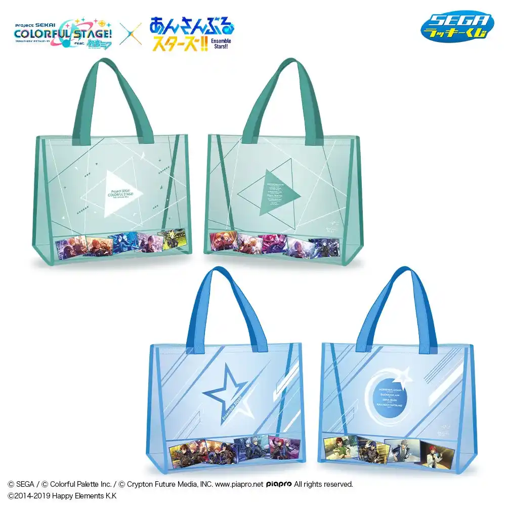 本くじは5等級に加え、くじの最後の1枚を引いたお客さまが貰える“ラストラッキー賞”で構成されるハズレ無しのくじです。スマートフォン向けゲーム『プロジェクトセカイ カラフルステージ! feat. 初音ミク』と『あんさんぶるスターズ!!』のコラボイラストを使用しています。夏にピッタリな「クリアバッグ」や大きめのサイズが嬉しい「ビッグビジュアルタオル」は、イベント参戦時にもお役に立つこと間違いなしです。他にも「ポーチ」、「缶ミラー」、「ラバーキーホルダー」、「ビジュアルボードセット」などのコラボイラストをふんだんにデザインしたラインナップとなっております。店舗からなくなり次第終了となります。 |