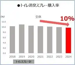 エステーが実施した調査(※2)では、排泄臭や空間独特のニオイなど、「トイレでニオイが気になる」人は約87%(※3)いるのに対し、トイレ用消臭スプレーの購入率は約10%(※4)という結果に。トイレのニオイを気にする人が約9割いながら購入率が低い理由を探るべく、トイレ用消臭スプレーの気になる点を現使用者へ聞いたところ、「自分好みではない香りや見た目」や「使用時のガスっぽさや噴射時のスプレー音」など、スプレー使用時のストレスが多く挙げられました(※5)。 |