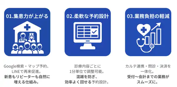 1.集患力が上がる:Google・マップ・LINE 導線で新患と再来を一括支援 |