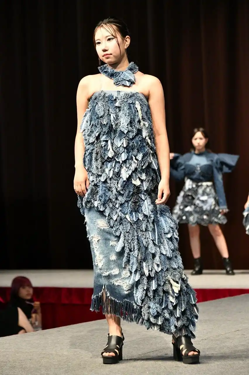若者が未来へ向かって航海する姿や、夢に挑む無限の可能性という想いを込めたショーには神奈川県内の高校生がモデルとして参加。モード学園の学生がヘアメイクやスタイリングを施し、古着をリメイクした衣装や学生オリジナルブランドの作品を高校生たちが着こなしました。ランウェイでポーズを決めるたび、会場は大きな拍手で包まれました。 |