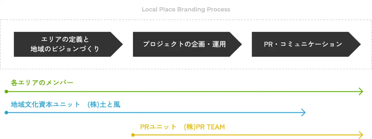 エリア開発やPRを基点としたプロジェクトを通して、その地域のイメージ・ブランド力が高まる、そして地域の人にとっても、地域に関わる人にとっても誇りや愛着が増すことを目指しています。 |