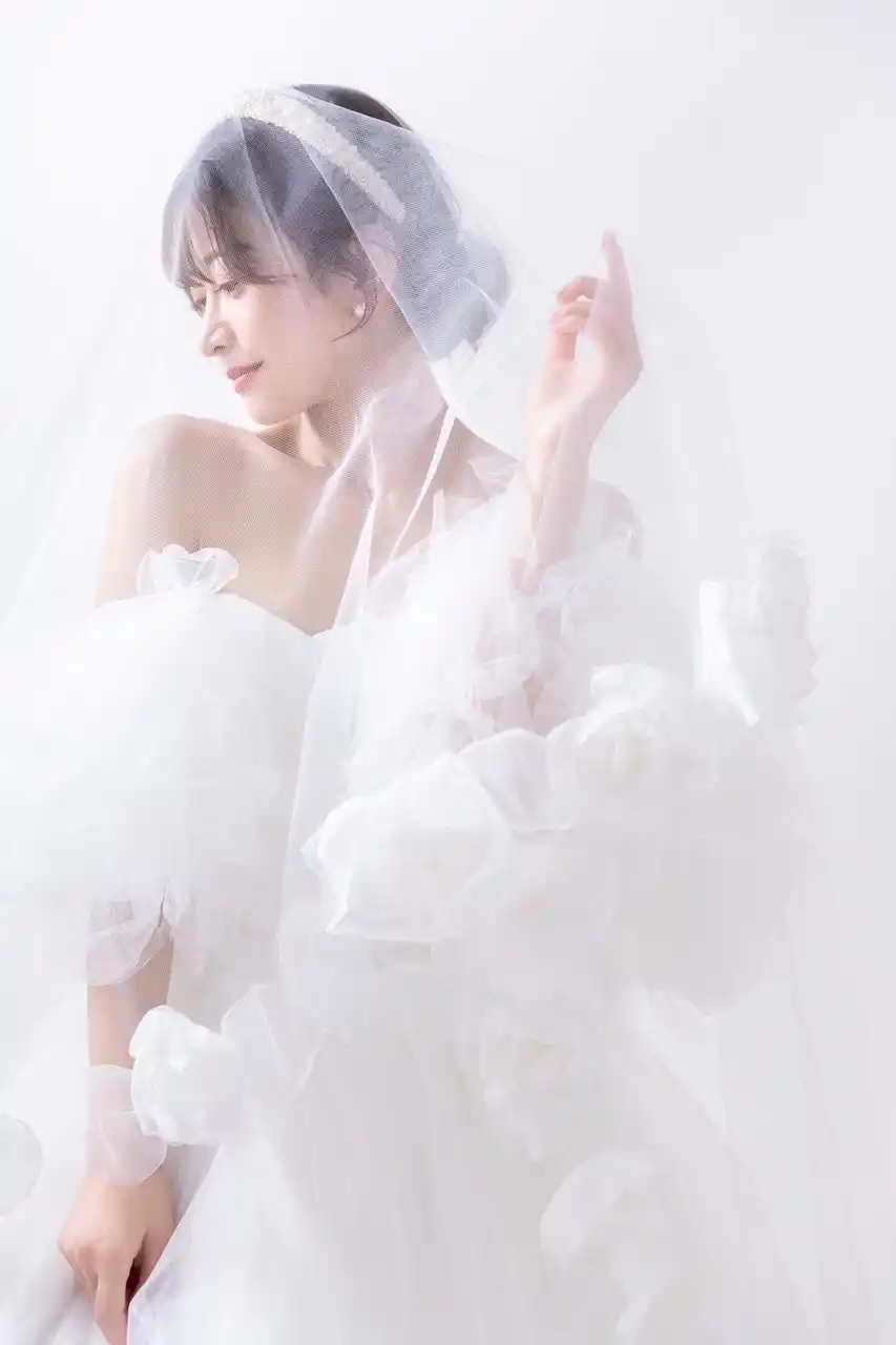 ウェディングドレスを着るなら、花嫁らしくベールを使用したコーディネートがおすすめです。 |