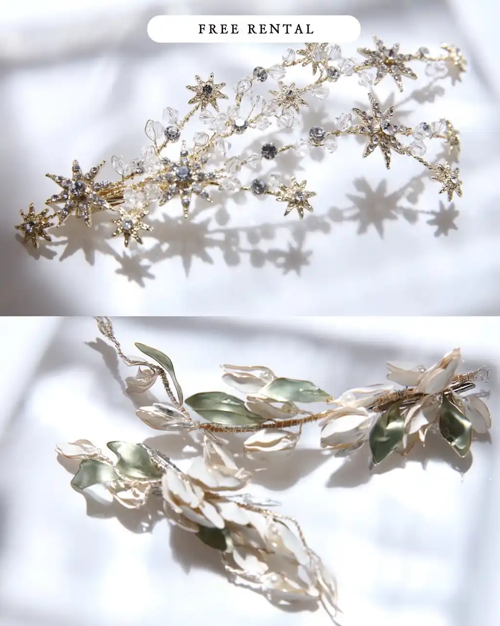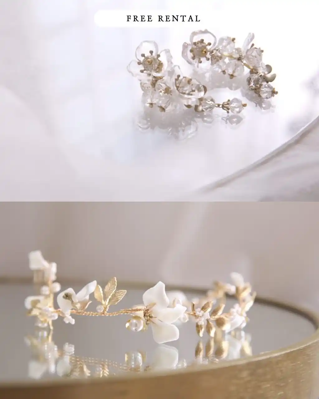 当店では、熟練のバイヤーが厳選した、他では出会えない特別なプレミアアクセサリーをご用意しております。繊細な輝きを放つティアラ、顔周りを華やかに彩るベールなど、一つひとつが職人の手によって丁寧に作られた逸品です。 |