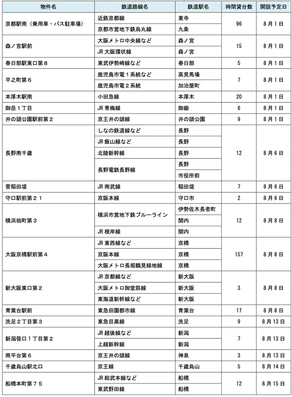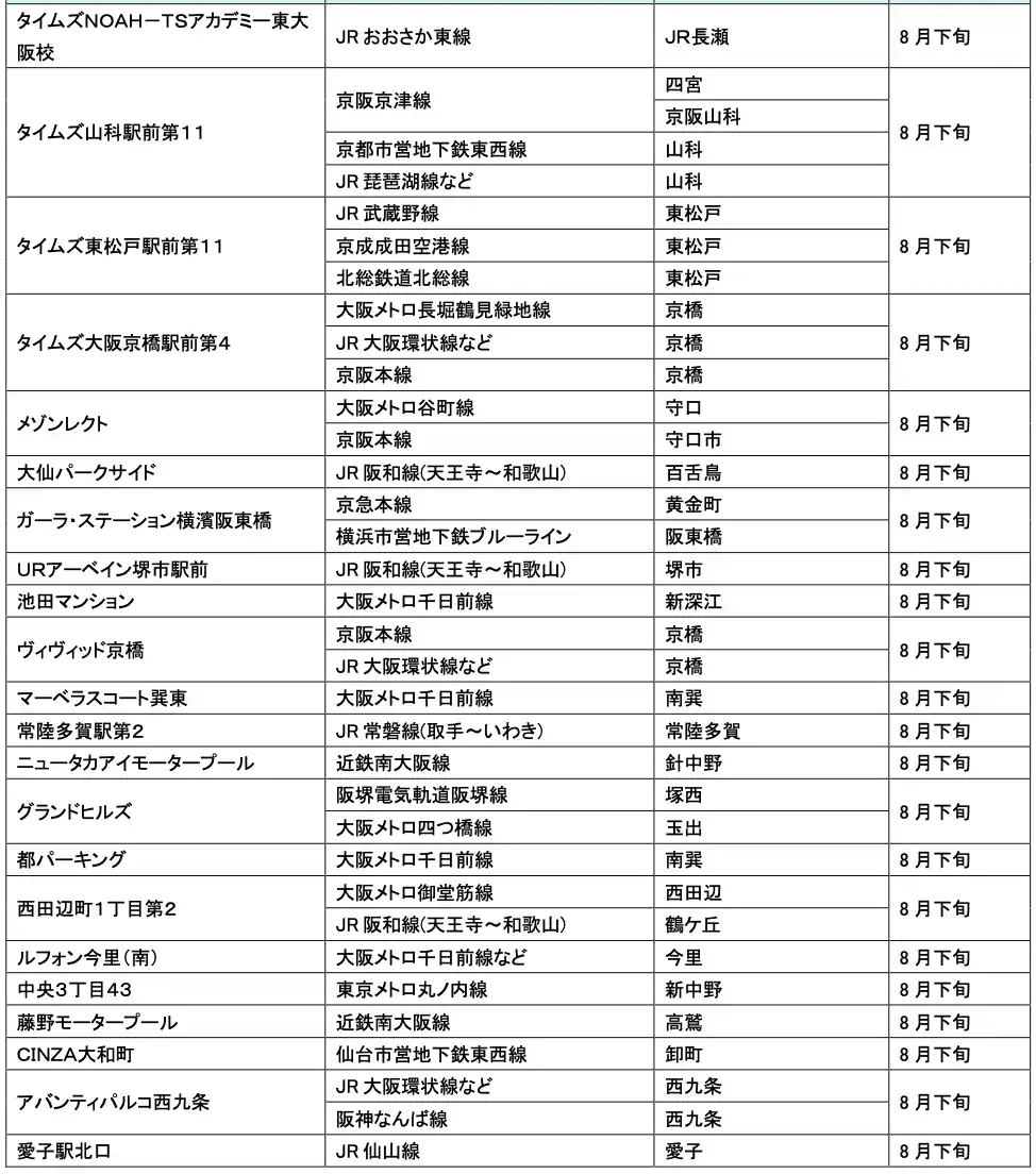 【パーク24グループ】 【サステナビリティアクション】パーク&ライドが可能なタイムズパーキングレール&カーシェアが可能なタイムズカーステーション8月のオープン情報