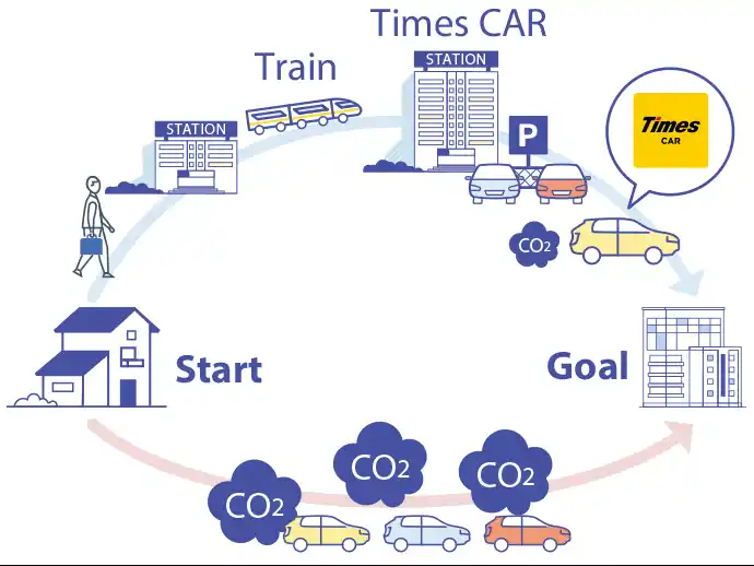 | カーシェアリングサービスにおいては、目的地の最寄駅まで鉄道などの公共交通機関で行き、降車後に駅近くのステーションからカーシェアリングのクルマで移動する「レール&カーシェア」ができるステーションを積極的に開設しています。 | |||