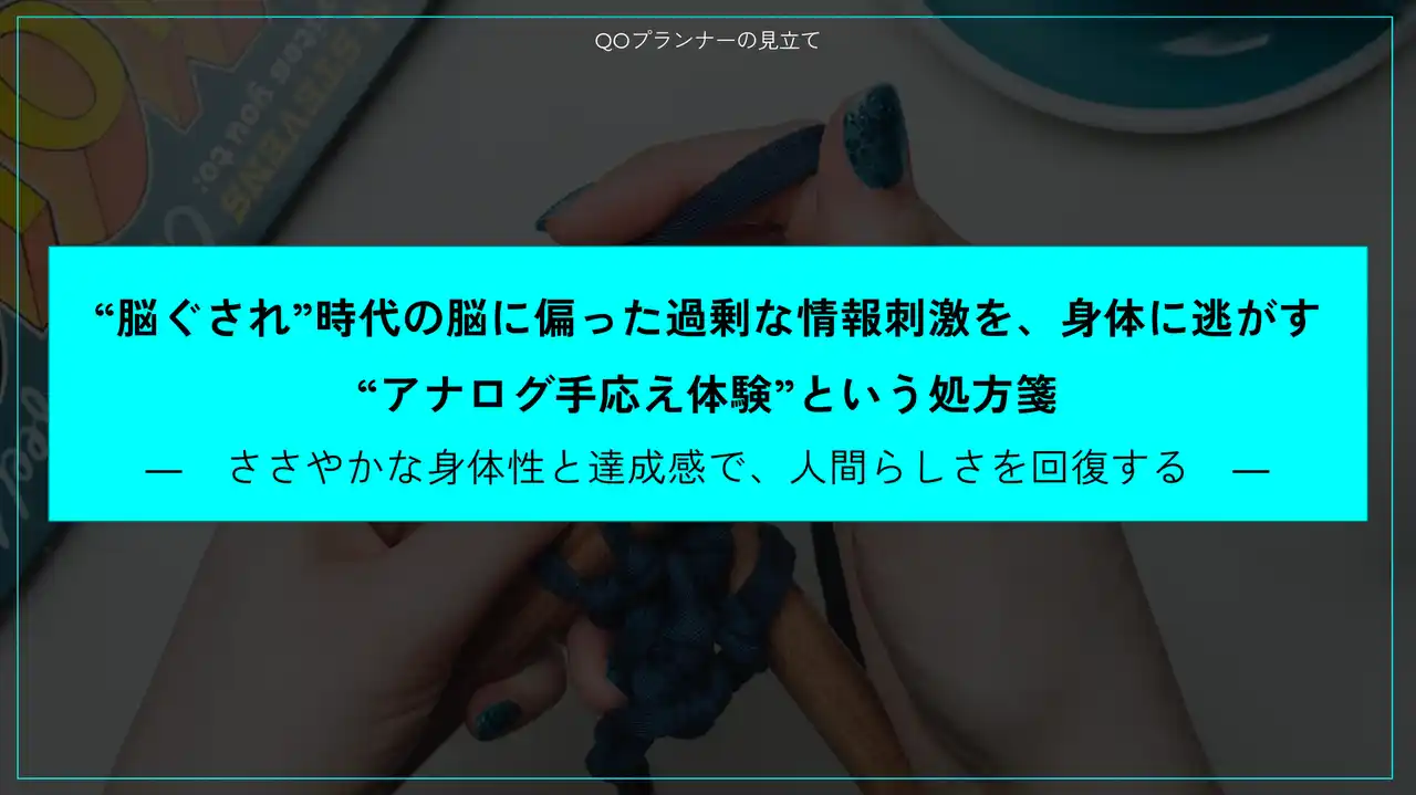 ■QOプランナーの見立て:“脳ぐされ”時代の脳に偏った過剰な情報刺激を、身体に逃がす“アナログ手応え体験”という処方箋 |