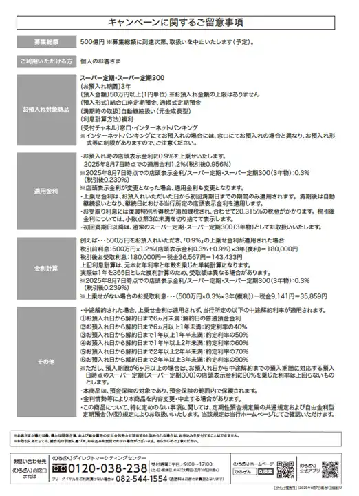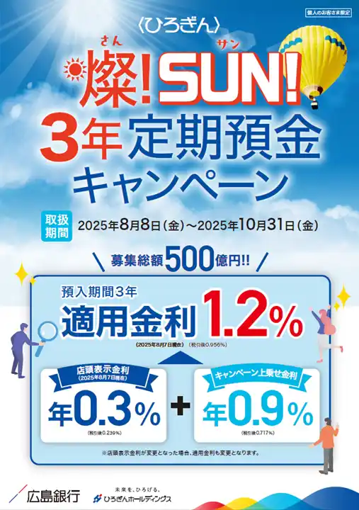 【株式会社 広島銀行】 「〈ひろぎん〉燦!SUN!3年定期預金キャンペーン」の実施について