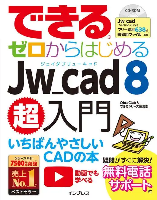 Jw_cad 8のもっともやさしい解説書として、発売以来ベストセラーになっている1冊です。大きな画面、大きな文字で読みやすく、Jw_cadに独特なマウス操作もイラスト入りで丁寧に紹介。練習用ファイル、Jw_cad 8、フリー素材を収録したCD-ROM付きで、すぐに操作を体験できます。これからJw_cad 8を始めたい人にお勧めです! |