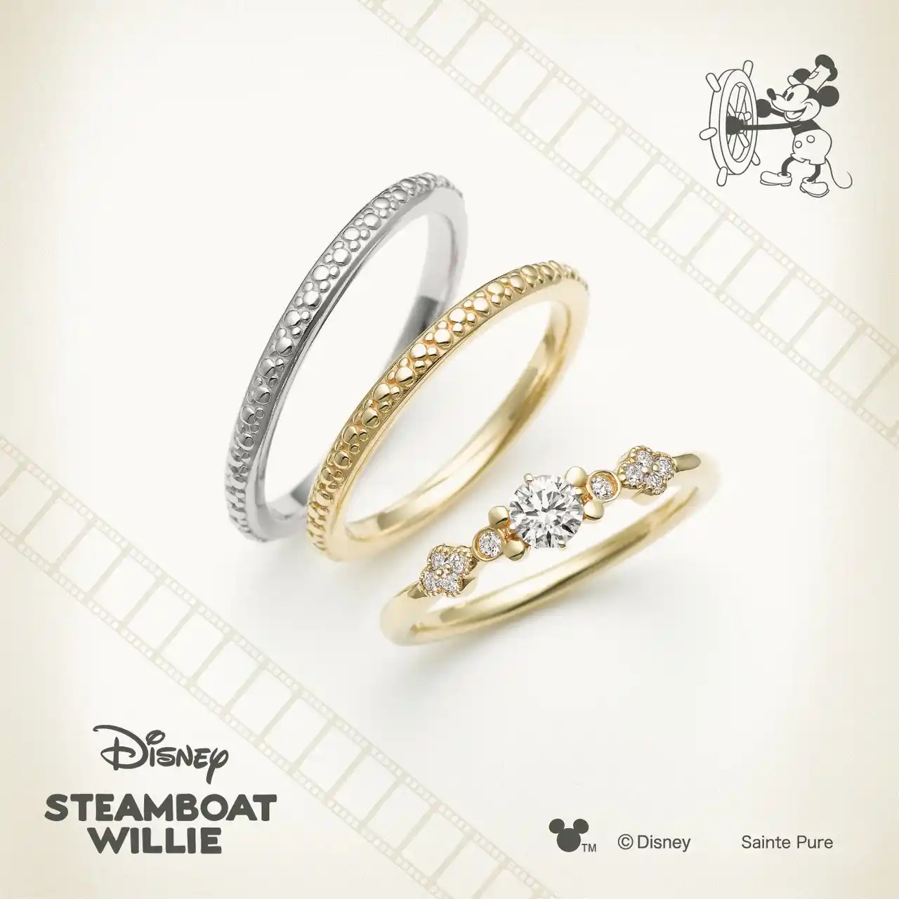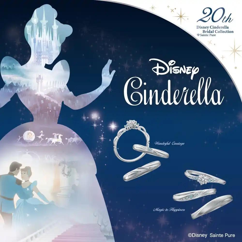 | 一真堂では、人気の『シンデレラ』『美女と野獣』『Tangled』『リトルマーメイド』『FANTASIA』『STEAMBOAT WILLIE』の世界観を表現したブライダルジュエリーを豊富に取り揃えています。 | |||
