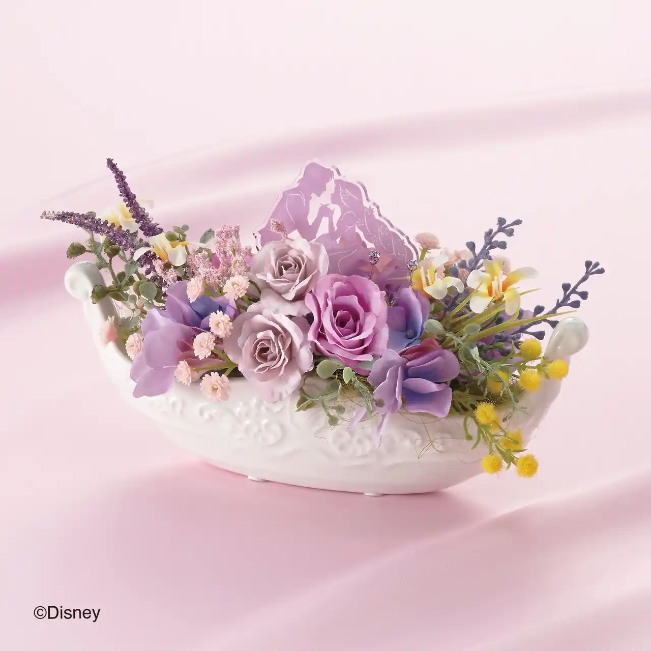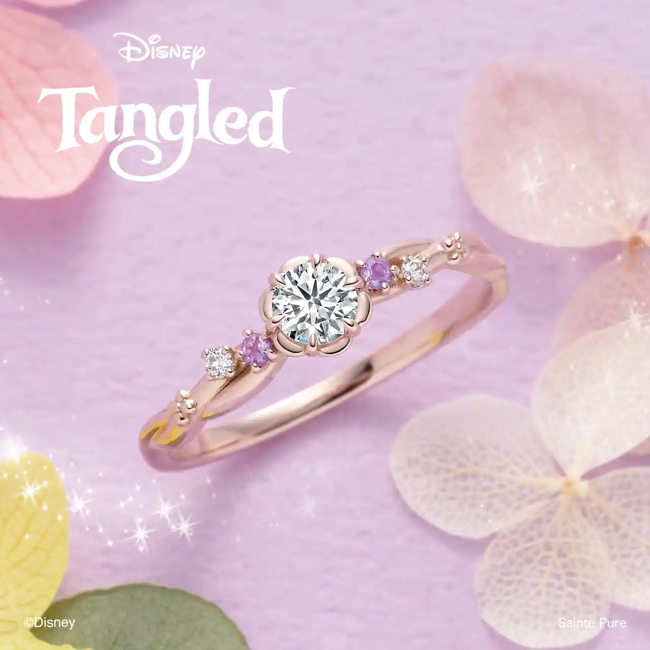 髪を結ってもらい小花で飾り付けをしたラプンツェルは、ユージーンと町で楽しい時を過ごします。 ラプンツェルの可愛らしい三つ編みヘアをリング全体で表現した世界観あふれる限定デザイン。 限定本数“210”という数字はラプンツェルの長い髪“約21メートル”にかけて。  |