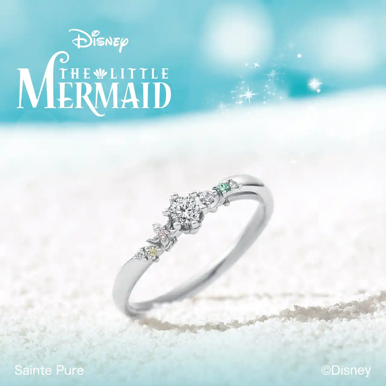 必ず会いに行く、あなたに・・・ アリエルが憧れた人間の世界。 夢を追い求め、新しい世界へ踏み出すアリエルの快活な冒険心。 アリエルと海の仲間たちを様々なモチーフとカラフルな宝石で色彩豊かに表現した限定エンゲージリング。  |
