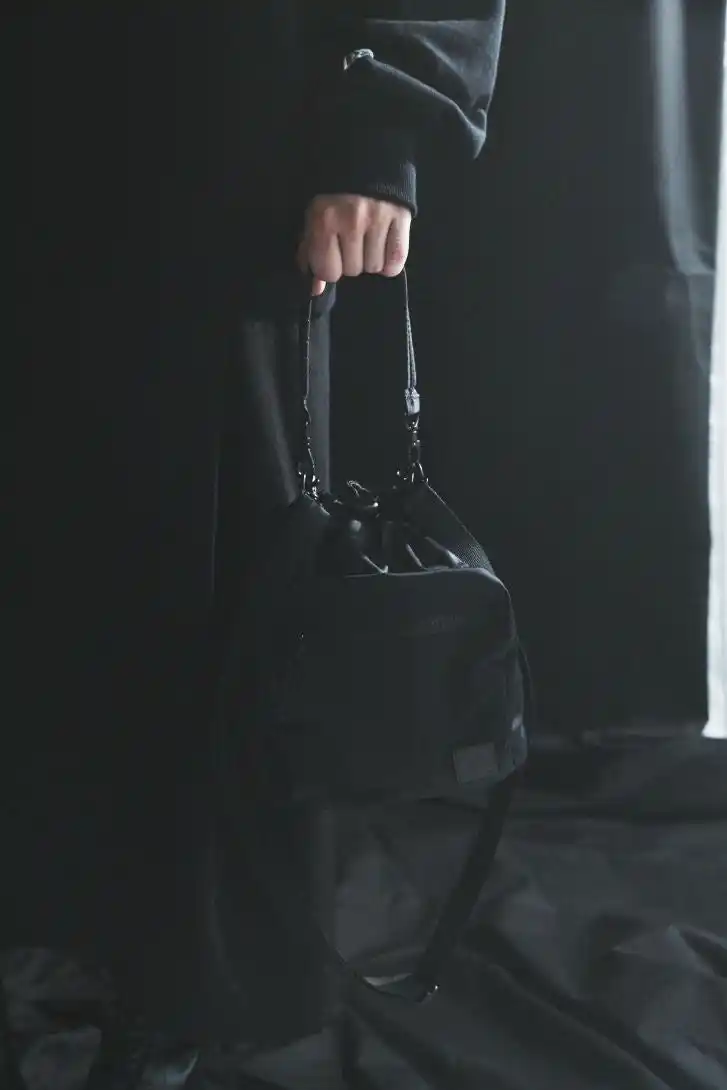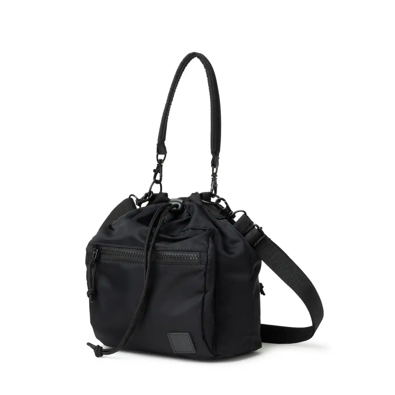 荷物を入れるのに程よいサイズの[2-Way Drawstring Pouch]は、手持ち・肩掛け・斜め掛けなど、好みの持ち方ができます。