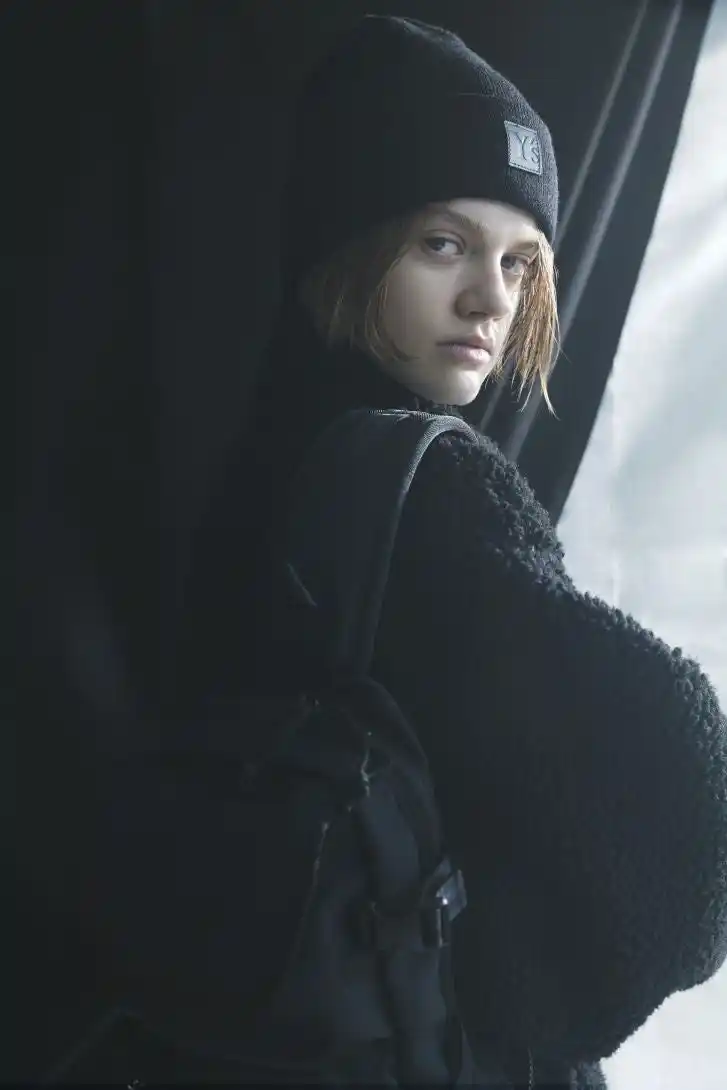 イヤーフラップが特徴的な[Knit Trapper ]は、大きなY’sロゴを配した。