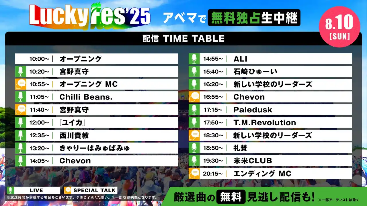 『LuckyFes’25』ABEMA配信タイムテーブル |