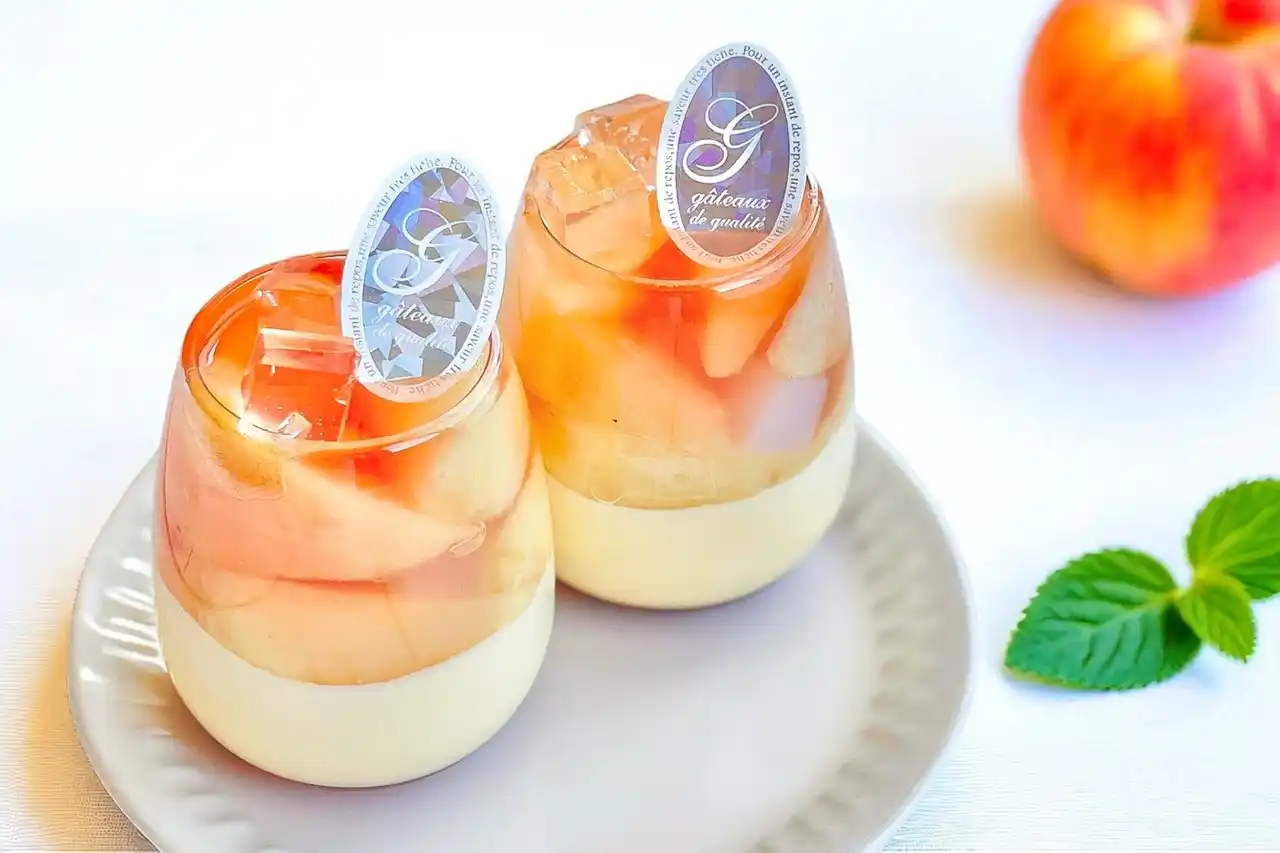 ほんのり桃が香る、爽やかなピンクのゼリーから始まる、夏にぴったりのスイーツ。 |