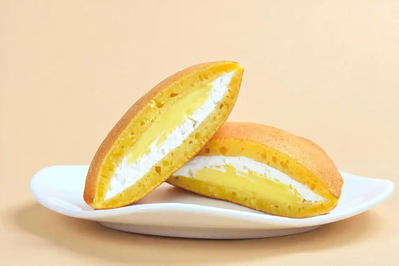 カスタードと生クリーム、ダブルの美味しさが楽しめる特製生どら焼き。 |