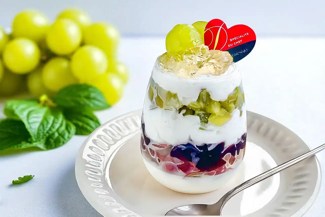 旬のブドウをたっぷり詰め込んだ、食べきりサイズの贅沢ミニパフェです。 |