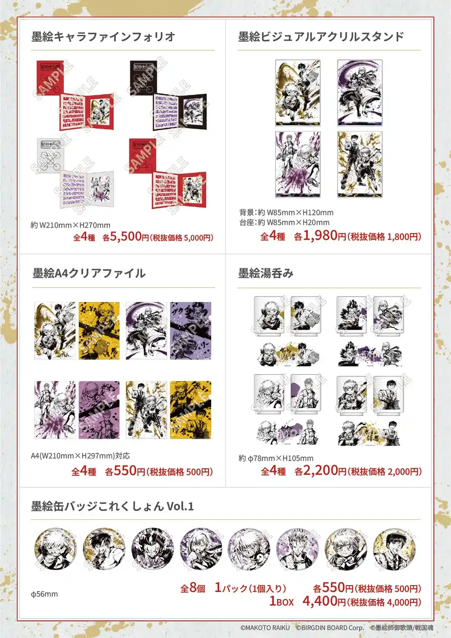 2.墨絵師・御歌頭による描き起こしイラストや、漫画家・雷句誠による、迫力の原作イラストを用いたグッズなど約80商品がラインナップ。 |