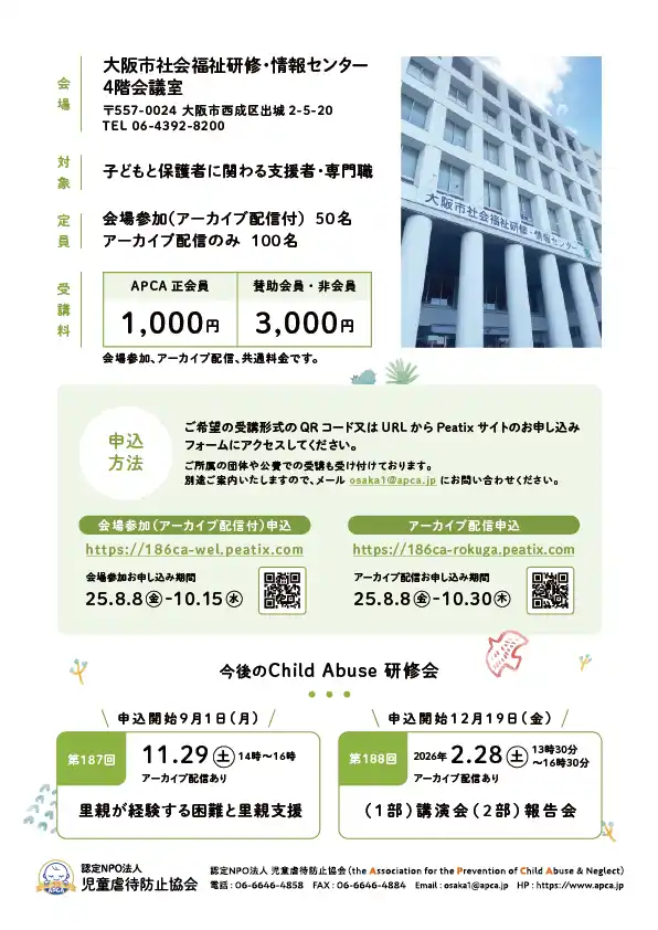 | 認定NPO法人児童虐待防止協会 06-6646-4858 | |||||