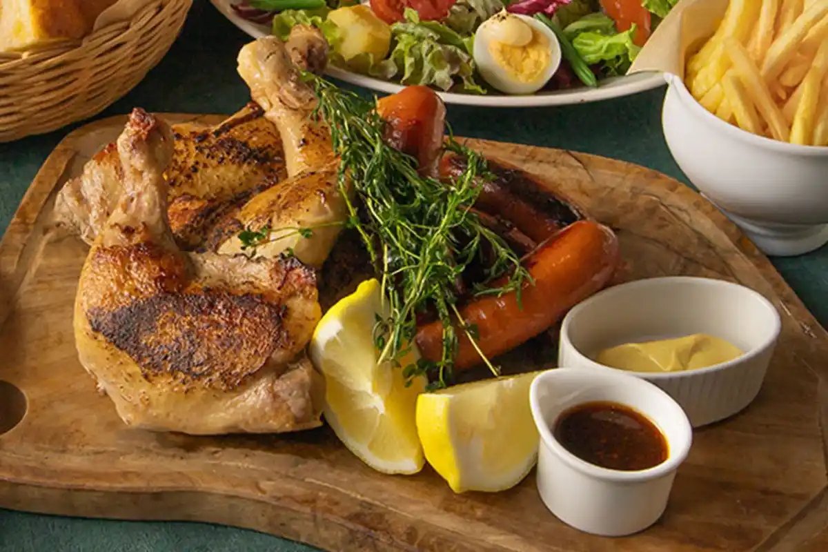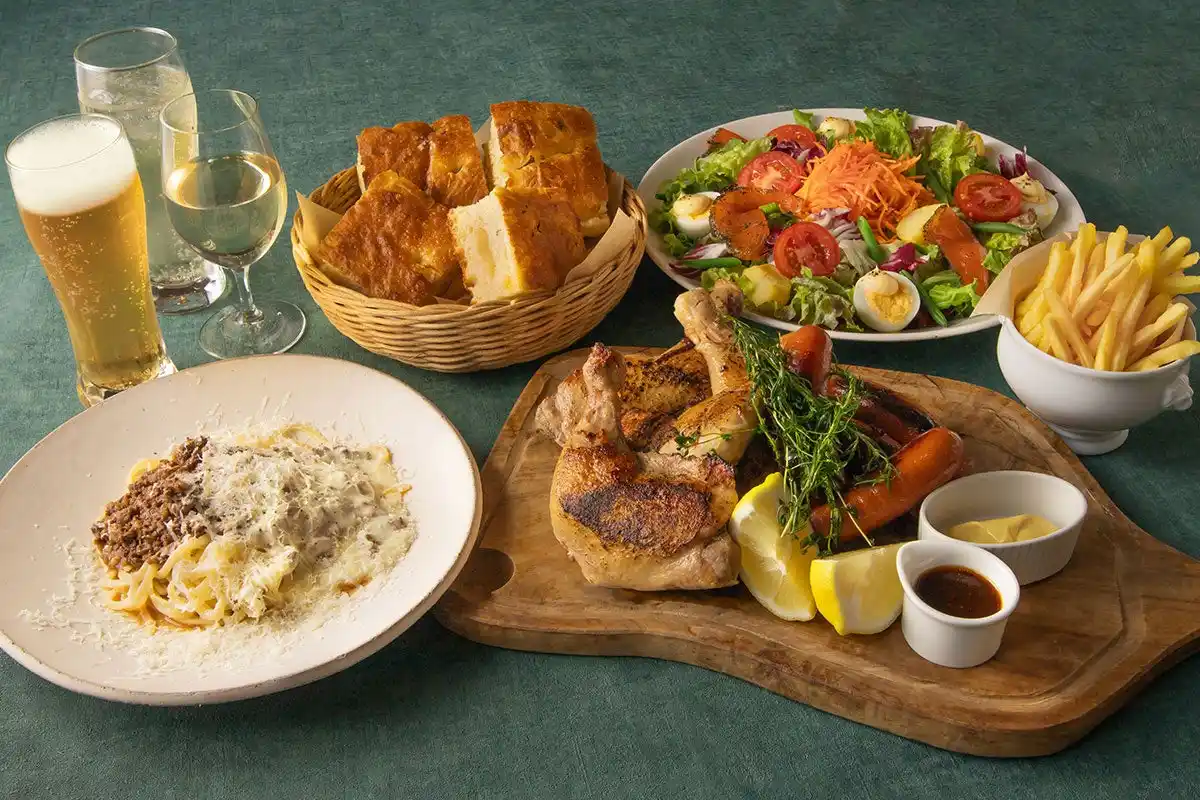 ・淡路島産北坂たまごのニース風サラダ(サーモン、キャロットラぺ、ウフマヨ) ・淡路島産ローズマリーの自家製フォカッチャ [おかわり自由] ・ハーブ香るフレンチフライ [おかわり自由] ・じっくり煮込んだ淡路産牛のボロネーゼ チーズフォンデュソースがけ ※淡路島産牛50%使用 ・骨付き鶏もも肉のコンフィ&グリルソーセージ |