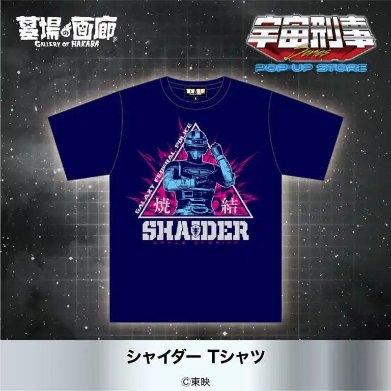 今回は『宇宙刑事シリーズ』として「宇宙刑事ギャバン」「宇宙刑事シャリバン」「宇宙刑事シャイダー」の3作品を取り上げた特別企画として開催!会場内は宇宙刑事シリーズをイメージした、胸のエンジンに火がつく演出が盛り沢山!今回のPOP UP STOREのために新たにデザインされた、Tシャツやキャップなどの定番アパレルアイテムはもちろん、人気のアクリルスタンド、キーホルダー、ステッカーや缶バッジなどのコレクターズアイテムが、グランドバースの増幅システムにスパーク!! |